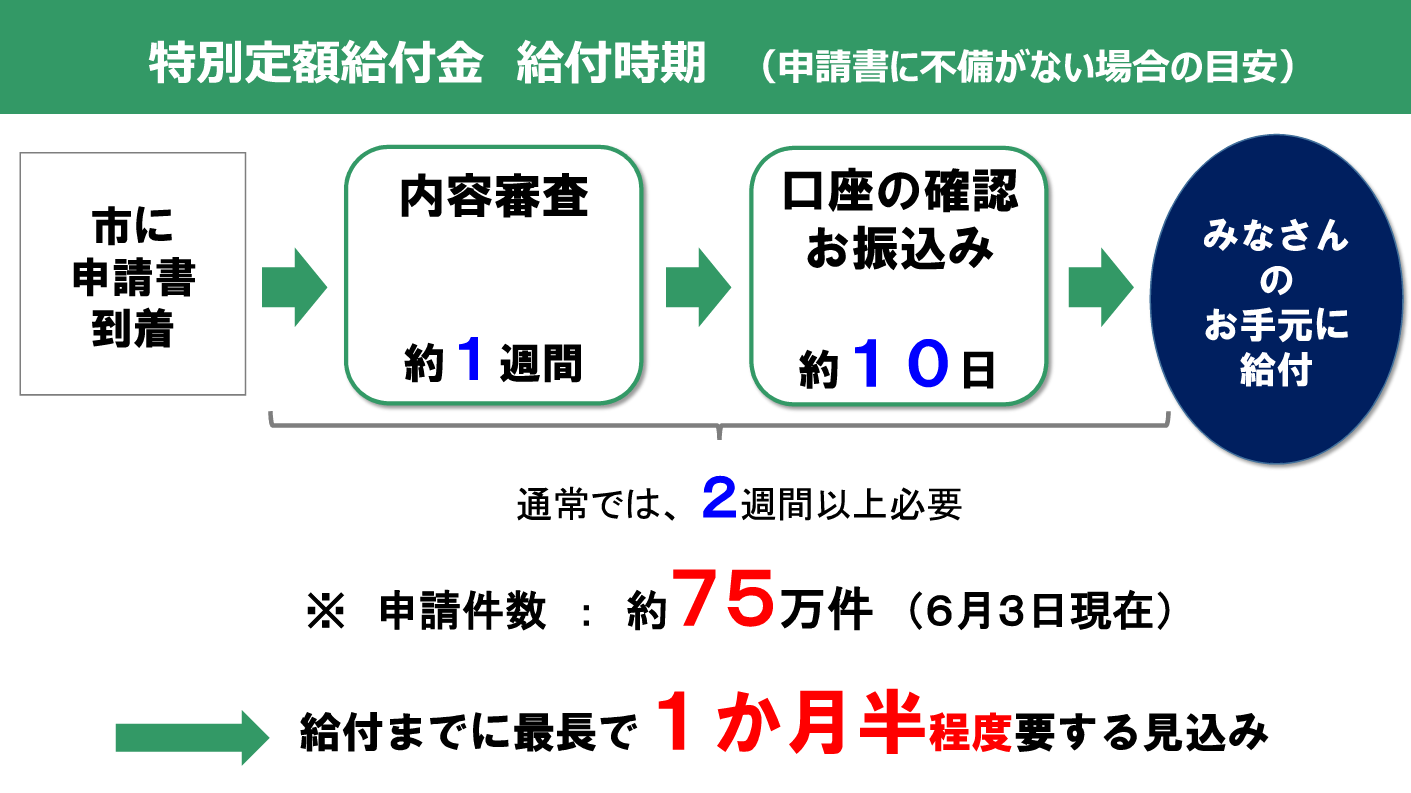 大阪市 東淀川区役所 A Twitter 10万円の特別定額給付金 の給付スケジュールが発表されました 内容の審査 お届けに相当な時間を要する見込みですので 申し訳ございませんが お待ちいただきますよう よろしくお願いいたします 大阪市 東淀川区 給付金
